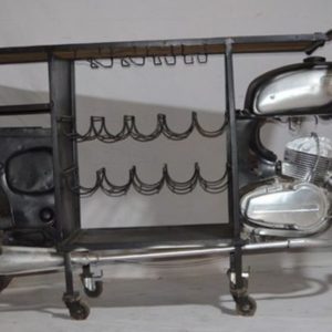 Introducing the Iron Industrial Bajaj Scooter Face Bar Counter, a unique and stylish bar counter that combines vintage charm with industrial design. Featuring the iconic face of a Bajaj scooter, this piece adds a retro flair to any space. Crafted from durable iron, it offers both functionality and aesthetic appeal, making it perfect for home bars, restaurants, or lounges. The sturdy structure provides ample space for drinks and accessories, while the scooter-inspired design serves as a conversation starter. Bring a touch of nostalgia and bold style to your space with this one-of-a-kind bar counter.