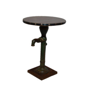 WOODEN ROUND CAF? TABLE WITH HANDPUMP BASE
