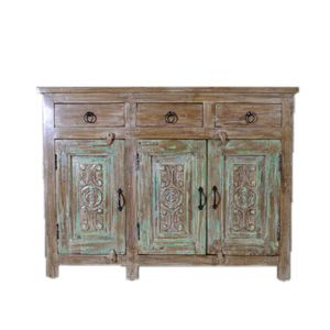 RECYCLED WOODEN CARVED 2 DOOR SIDEBOARD