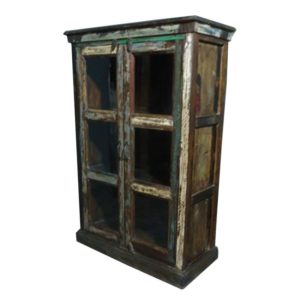 RECYCLED WOODEN 2 DOOR 6 GLASS ALMIRAH