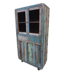 RECYCLED WOODEN 2 DOOR 1 GLASS ALMIRAH WITH 2 DRAWER