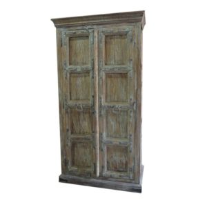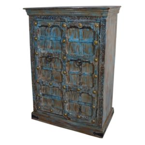Wooden Carved Door Brass Fitting Sky Blue Finish almirah