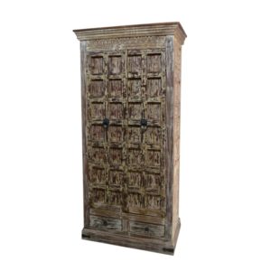 Wooden Carved Door Brass Fitting white Wash Finish almirah