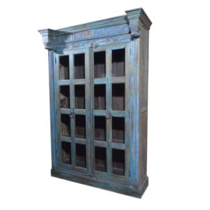 WOODEN OLD CAVED TODA FRAME 16 GLASS ALMIRAH