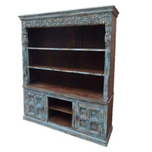 WDN OLD CARVED TWO PART BOOK SHELF WITH 2 DOOR