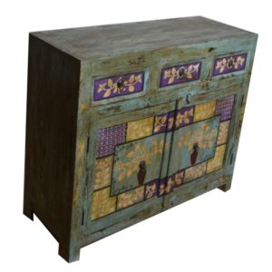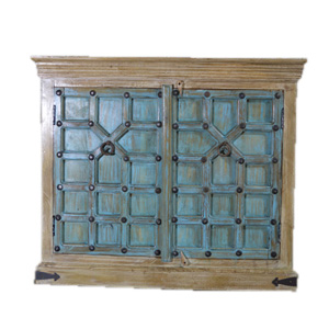 WOODEN PANJABI 2 DOOR CABINET ANTIQUE BLUE COLOUR