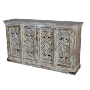 WOODEN PANJABI 4 DOOR SIDEBOARD ANTIQUE WHITE WASE