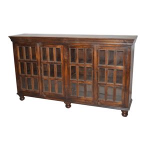 WOODEN 4 DOOR 36 GLASS SIDEBOARD NATURAL COLOUR