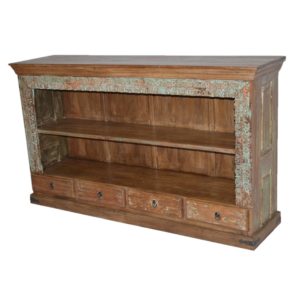 WDN OLD CARVED PANEL OPEN SIDEBOARD WITH 4 DRAWER/ CONSOLE
