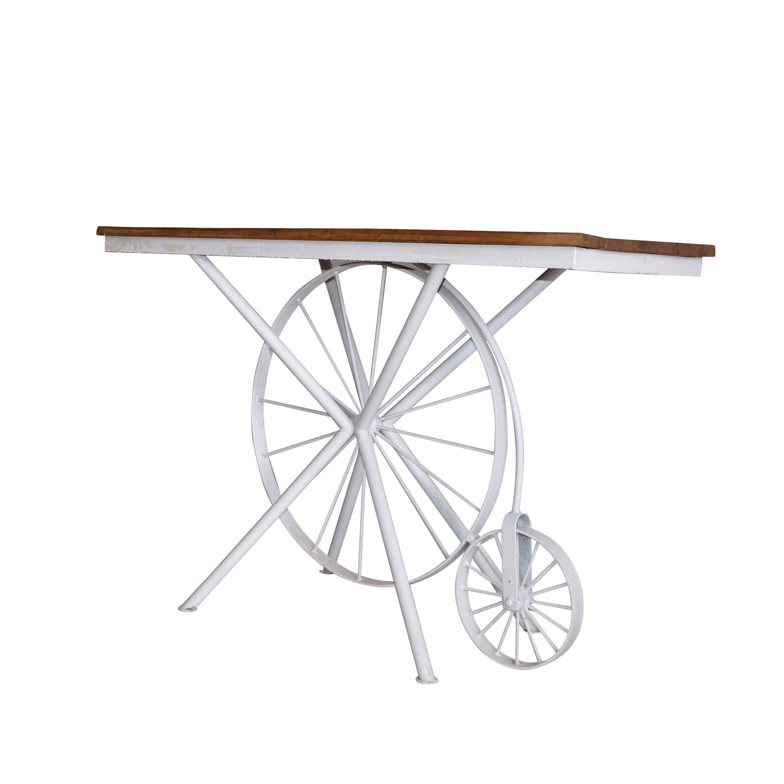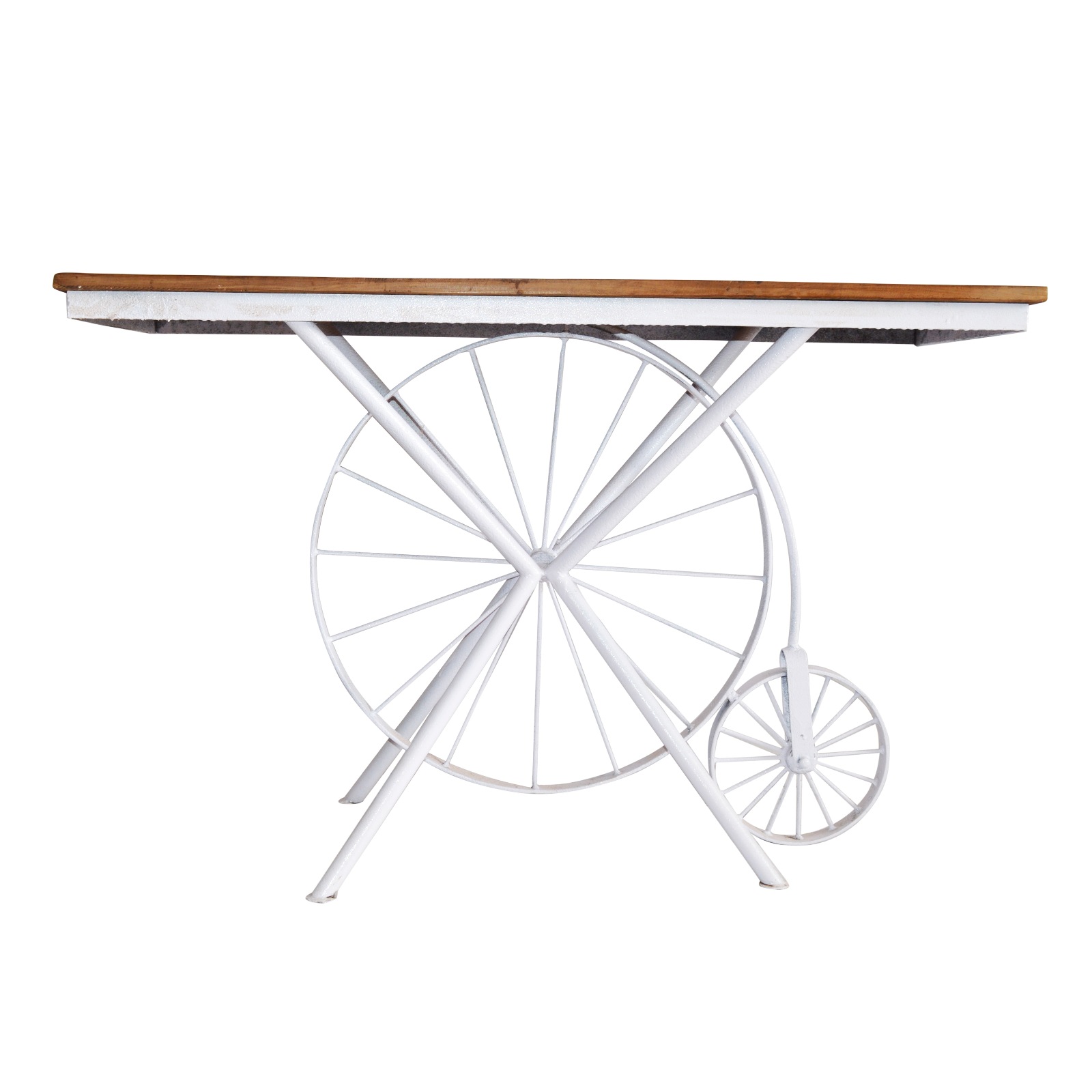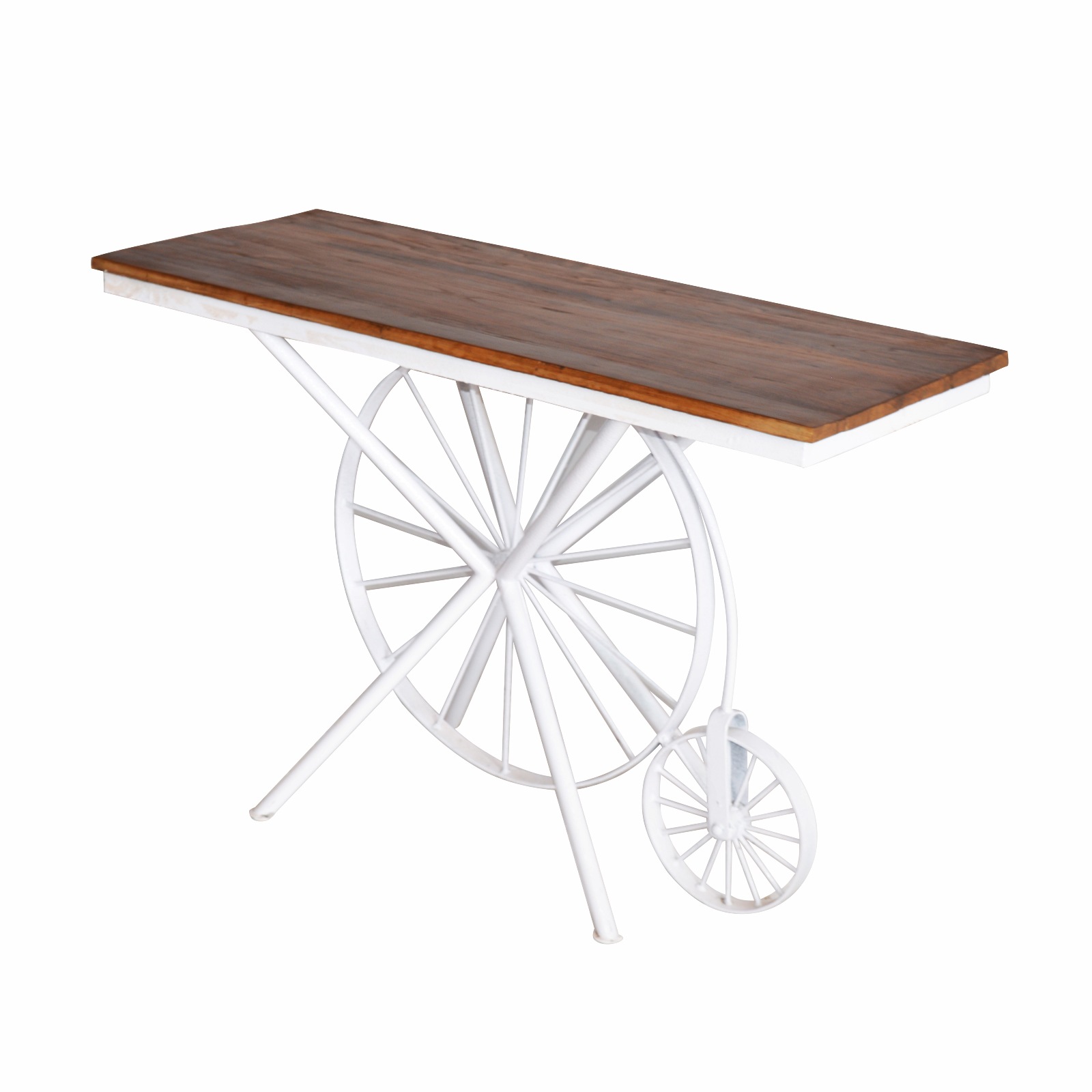 INDUSTRIAL CONSOLE TABLE TWO DRAWER TEAK TOP NATURAL FINISH
