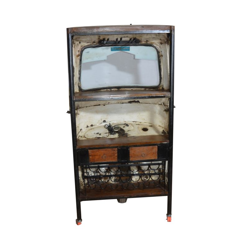 An Iron Industrial Auto Rickshaw Face Bar Counter is a unique and stylish piece of furniture that combines an industrial aesthetic with creative design.