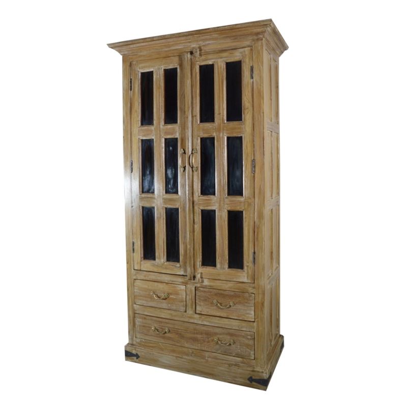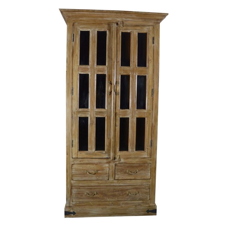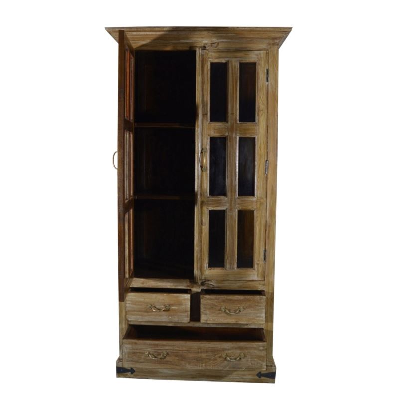 Old Teak Wood 12 Glass With 3 Drawer Almirah