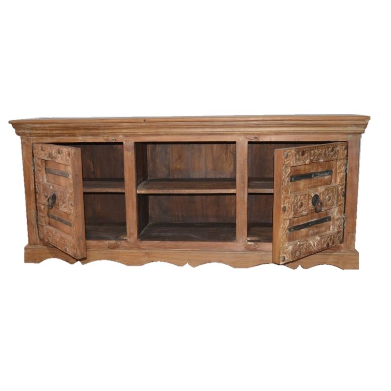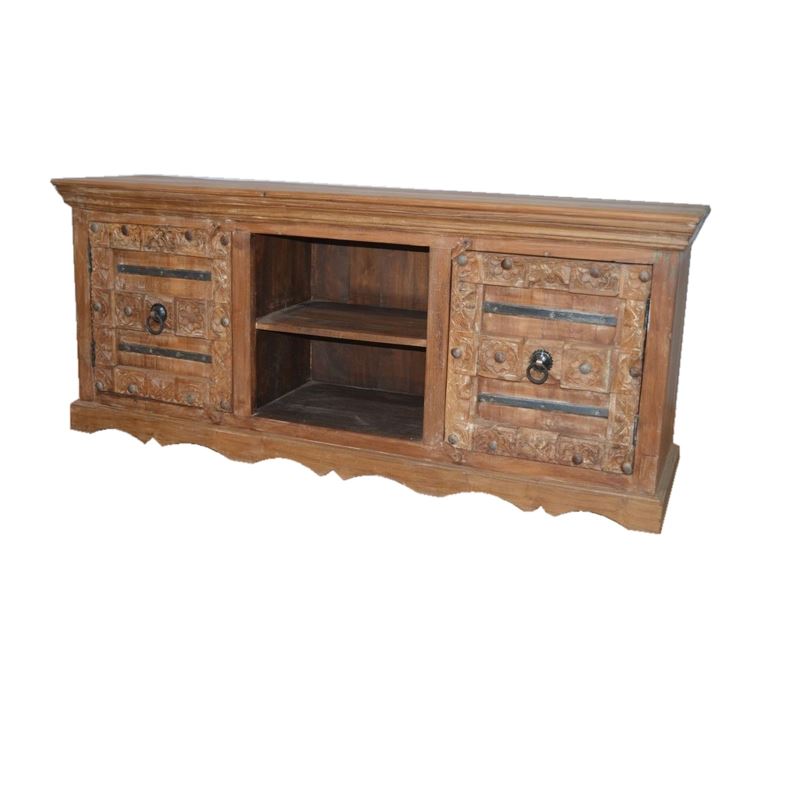 OLD TEAK WOOD 2 CARVED DOOR MEDIA CONSOLE