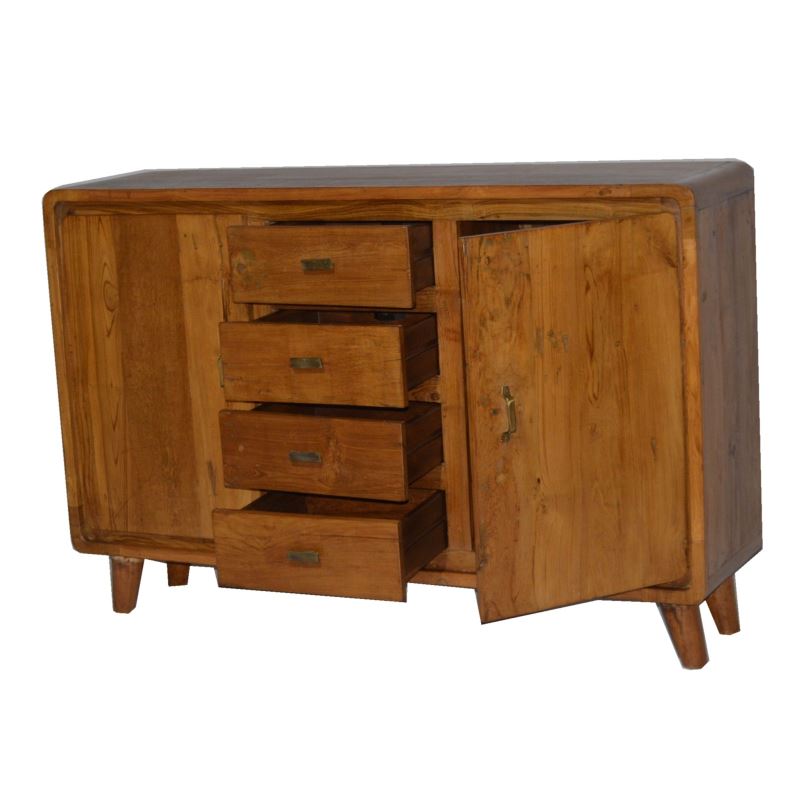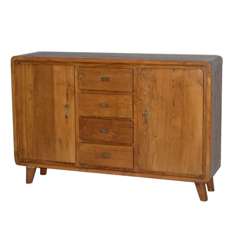 OLD TEAK WOOD 2 DOOR 4 DRAWER SIDEBOARD