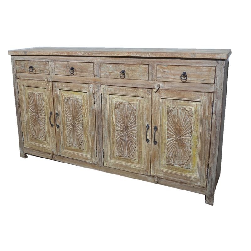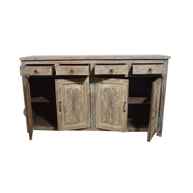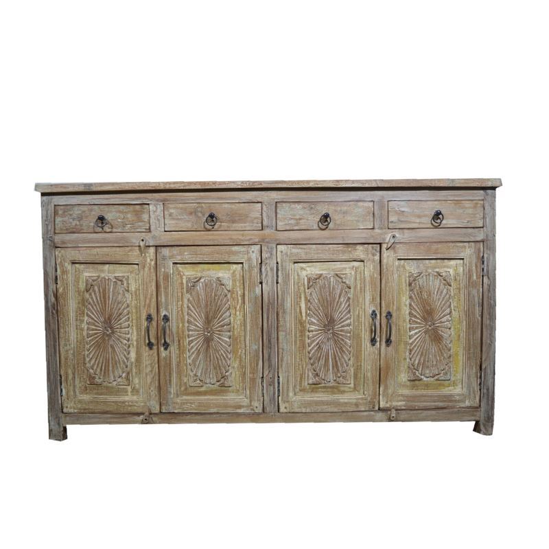 OLD TEAK WOOD 4 DOOR 4 DRAWER SIDEBOARD