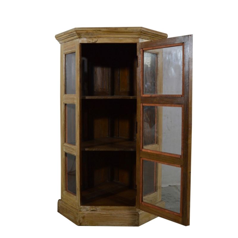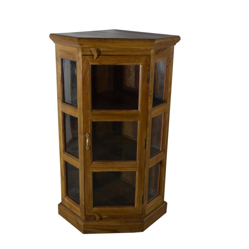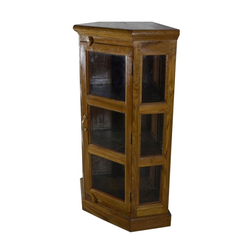 Old Teak Wood Glass Corner
