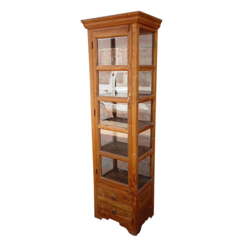Old Teak Wood Glass Shocase With 2 Drawer