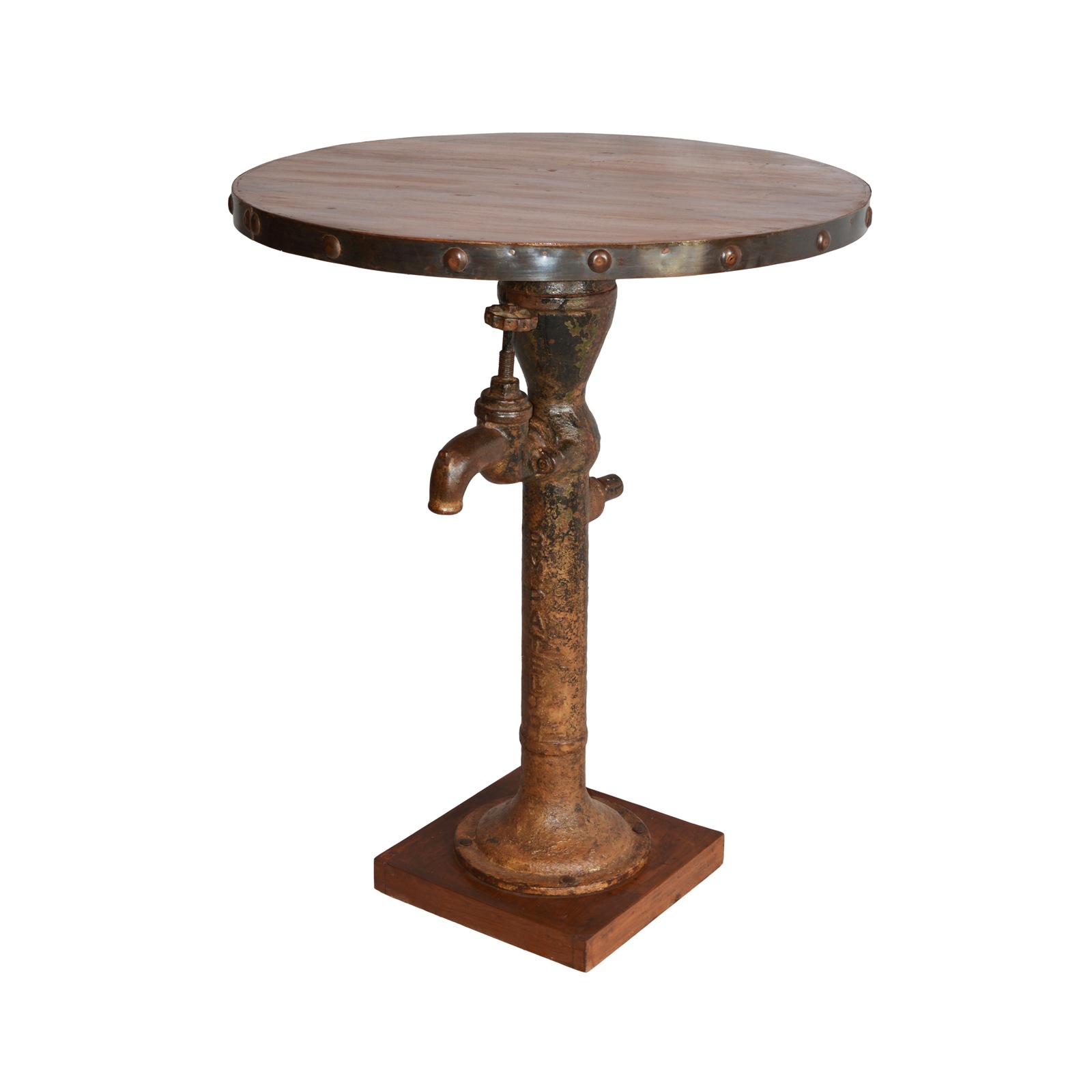 HAND PUMP ROUND TABLE RECLAIMED WOOD TOP
