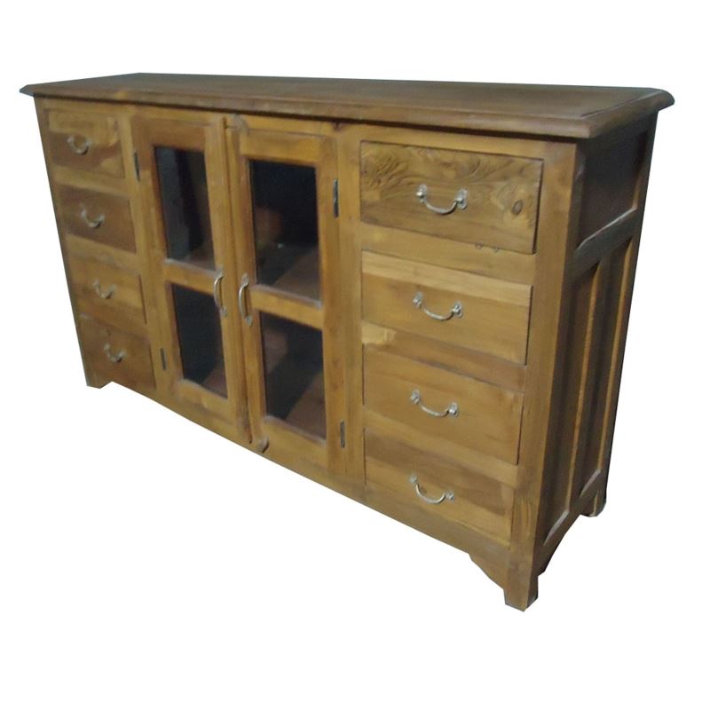 OLDTEAK WOOD 2 DOOR 8 GLASS 4 DRAWER SIDEBOARD