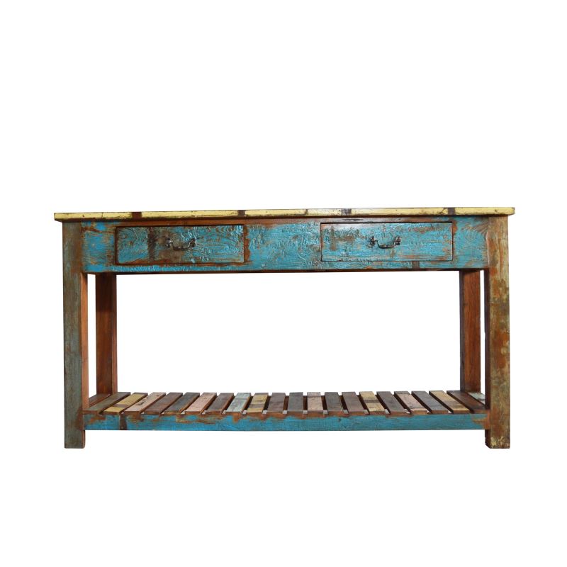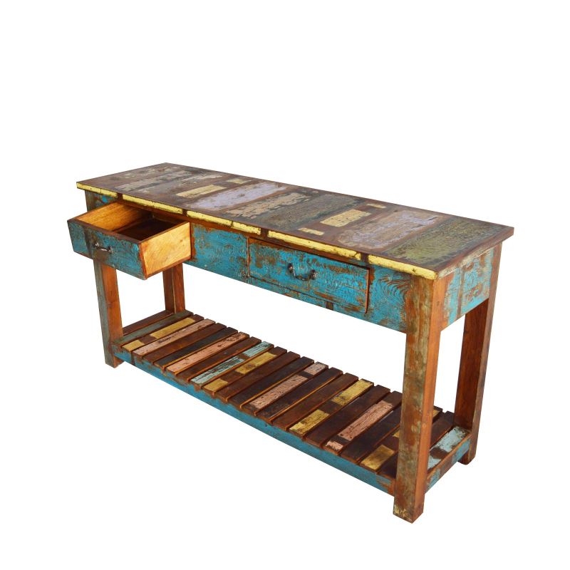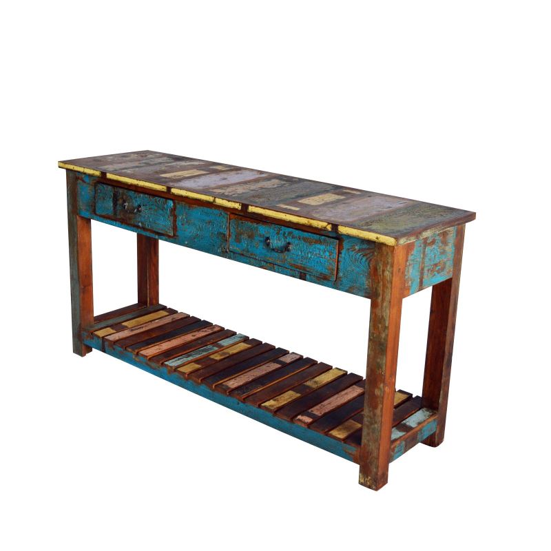 RECLAIMED WOOD TWO DRAWER CONSOLE TABLE