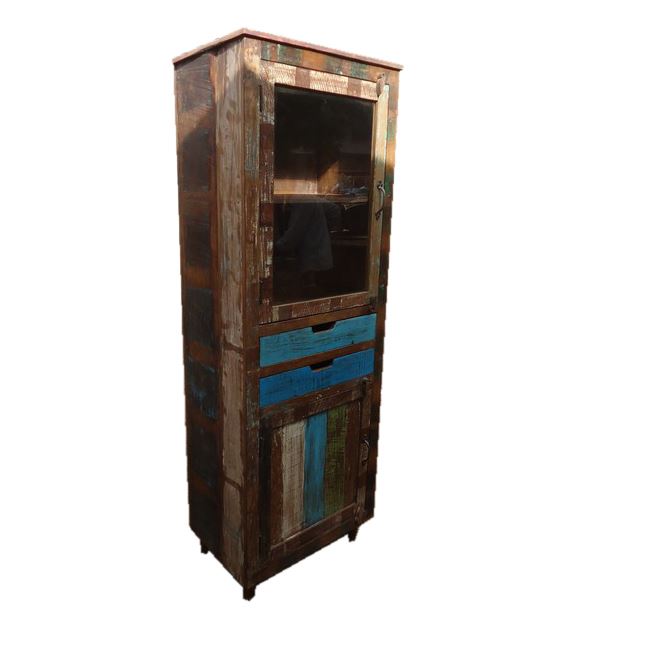 RECYCLED WOODEN 2 DOOR 1 GLASS ALMIRAH WITH 2 DRAWER