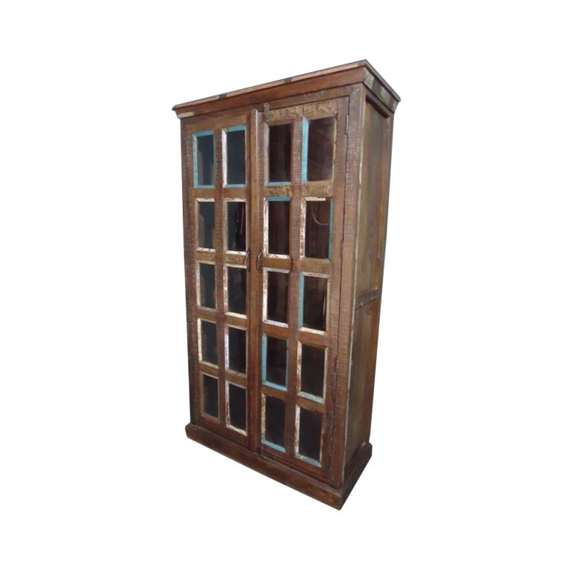 RECYCLED WOODEN 2 DOOR 20 GLASS ALMIRAH
