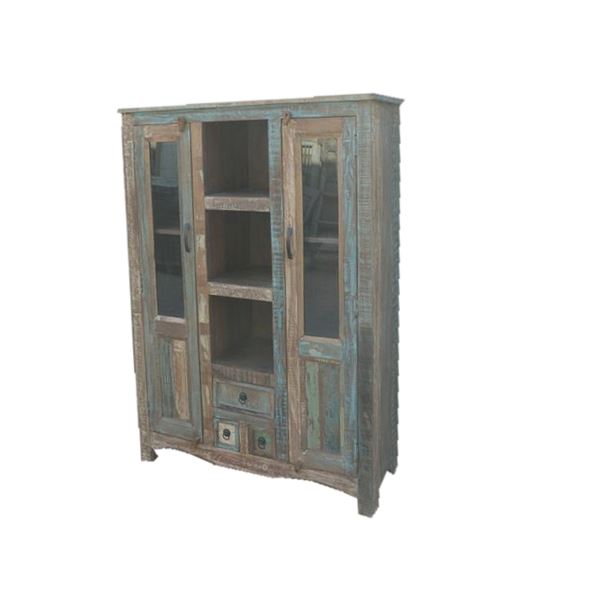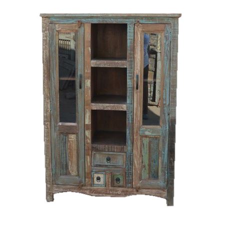 RECYCLED WOODEN 2 DOOR CENTER SHELF ALMIRAH WITH 2 DRAWER