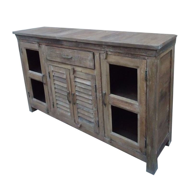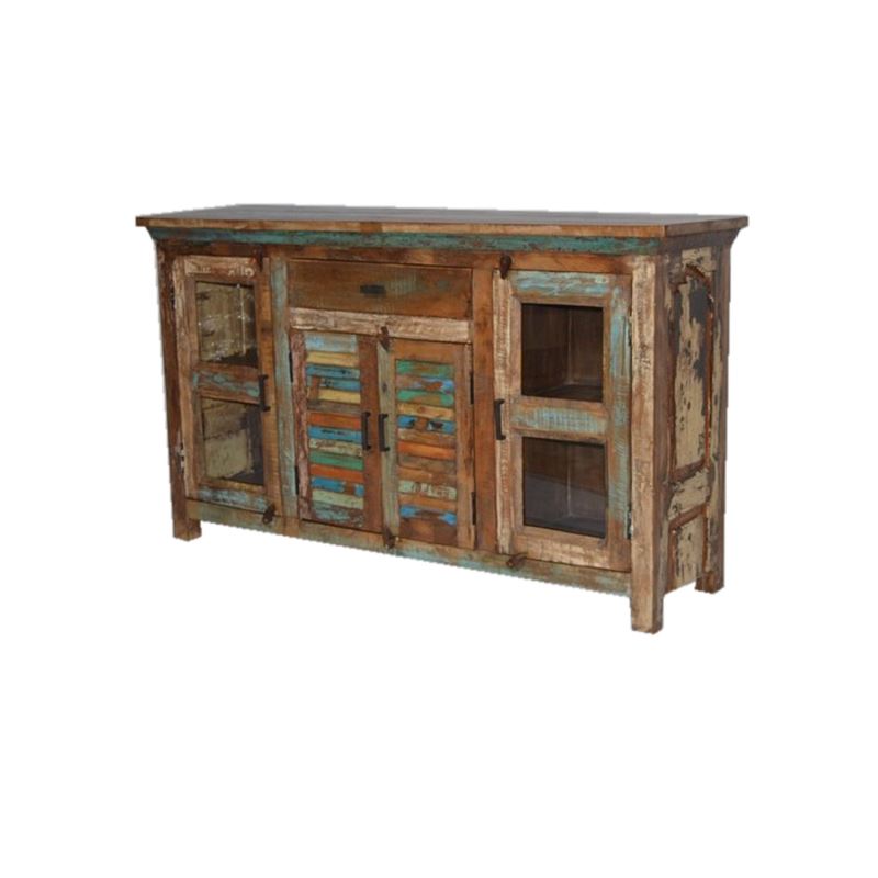 RECYCLED WOODEN 4 DOOR 4 GLASS ONE DRAWER SIDEBOARD