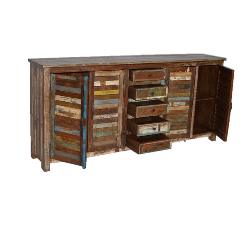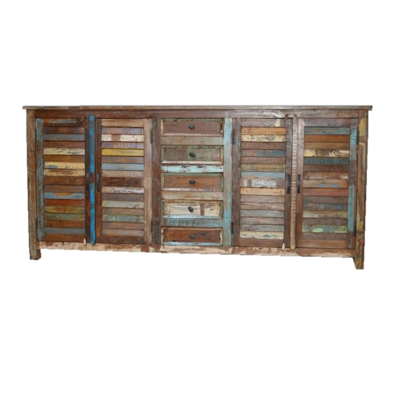 RECYCLED WOODEN 4 DOOR 5 DRAWER SIDEBOARD