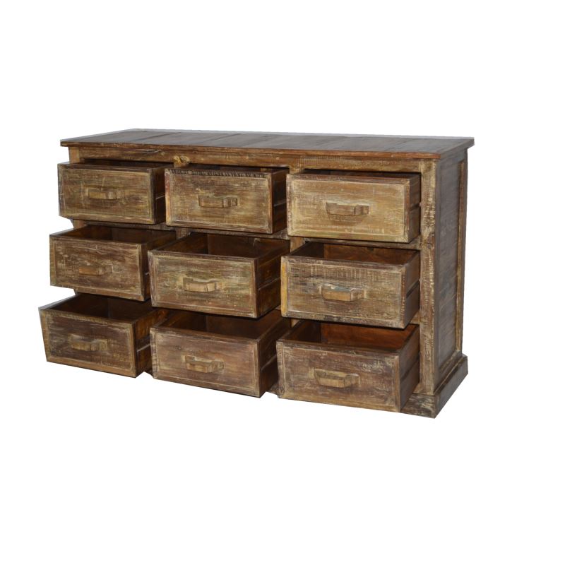 RECYCLED WOODEN 9 DRAWER CHEST