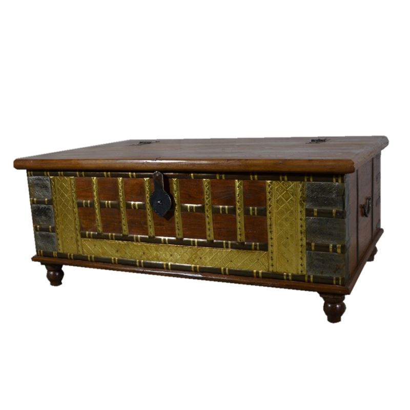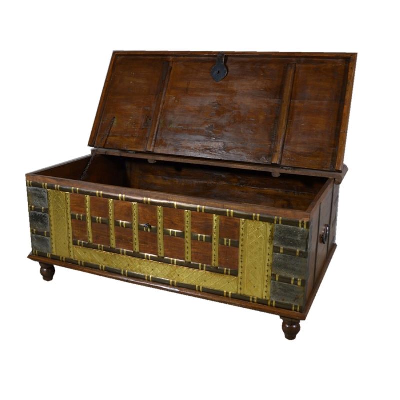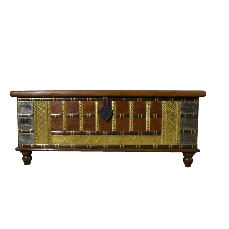 TEAK WOOD BOX WITH BRASS IRON MURALS