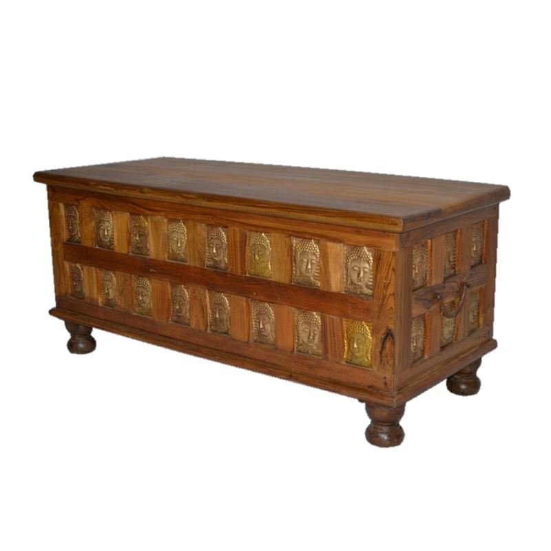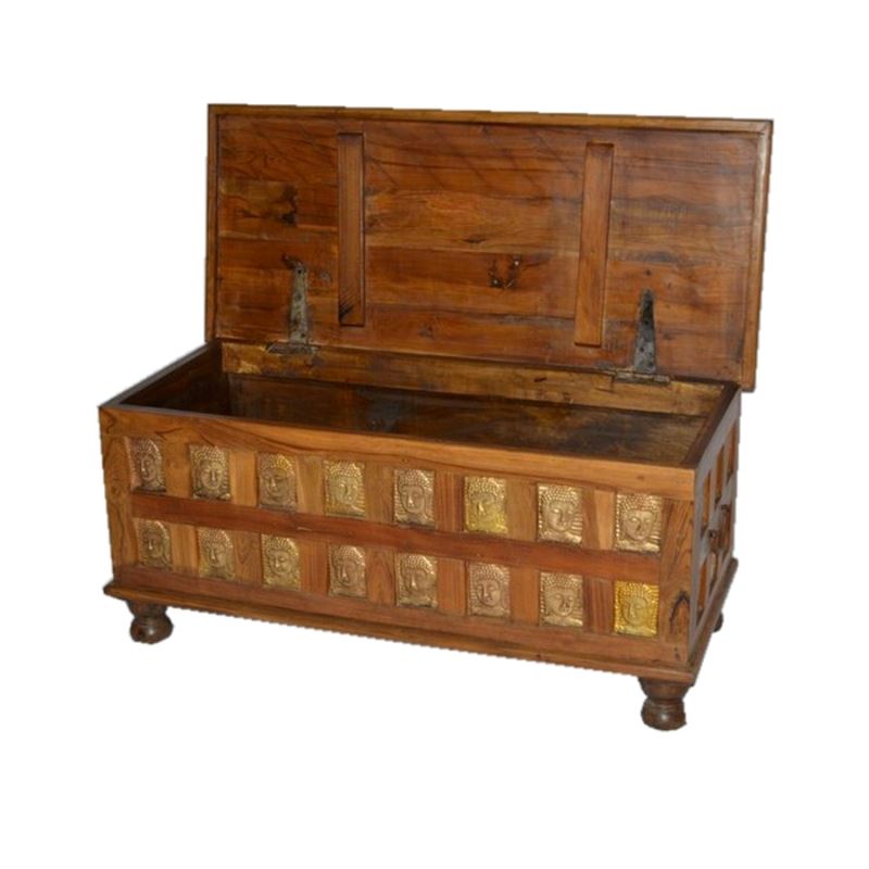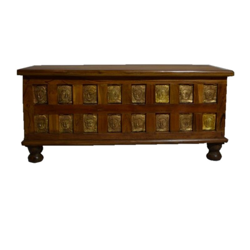 TEAK WOOD BOX WITH BUDDHA IN BRASS