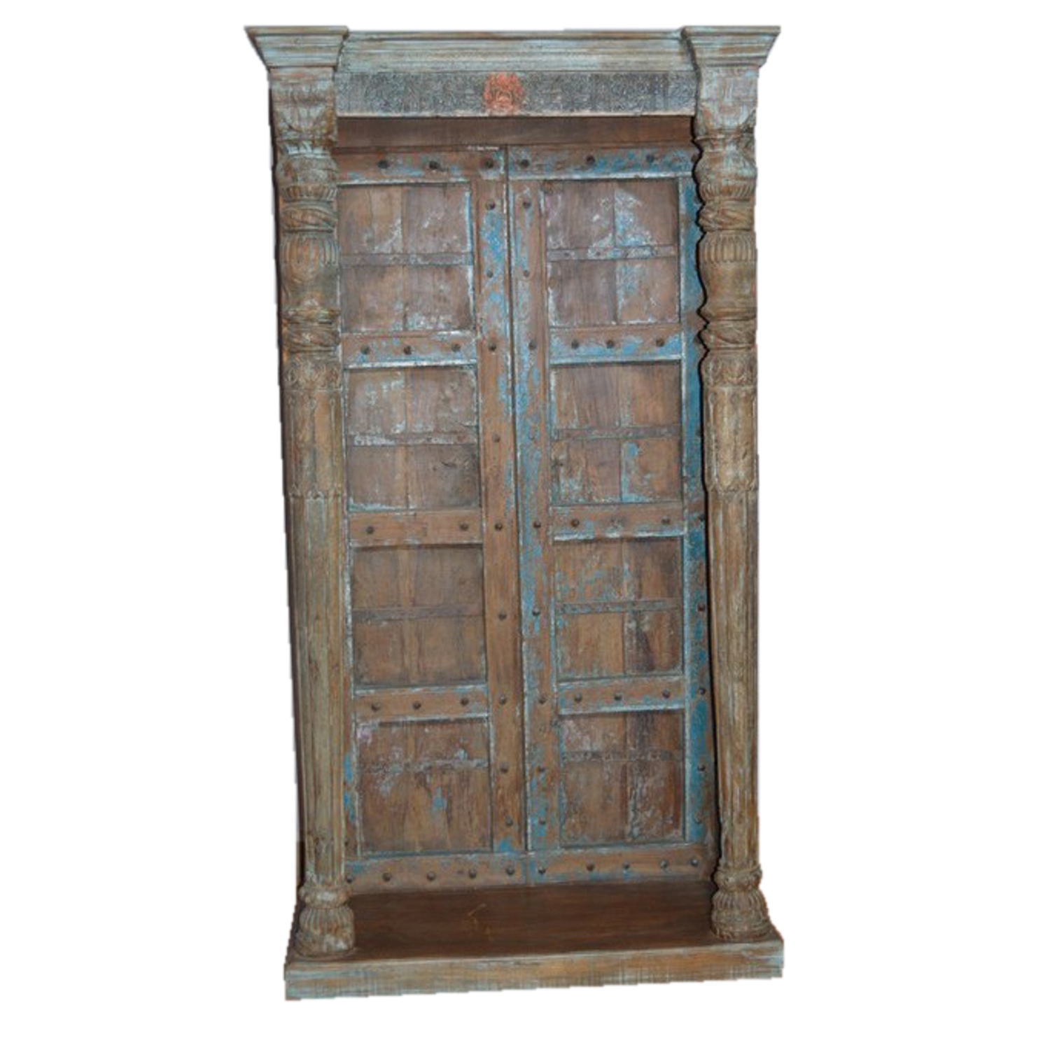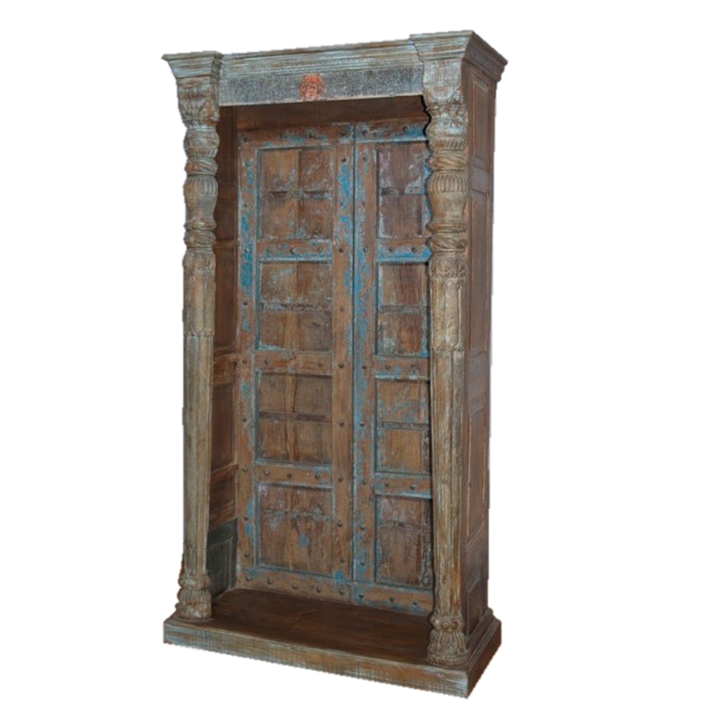 WDN CARVED FRAME DISPLAY WITH OLD DOOR AND GLASS SHELF