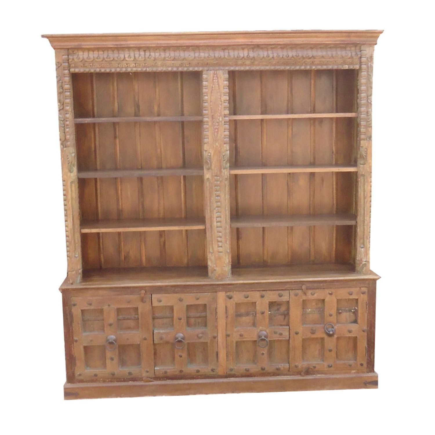 WDN OLD CARVED TWO PART CUPBOARD WITH 4 DOOR