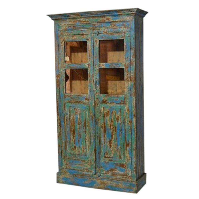 Wooden Old Carved Frame 16 Glass 2 Door Almirah