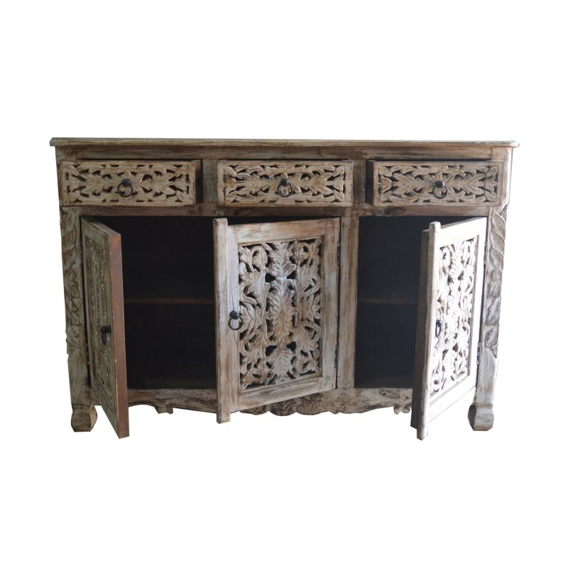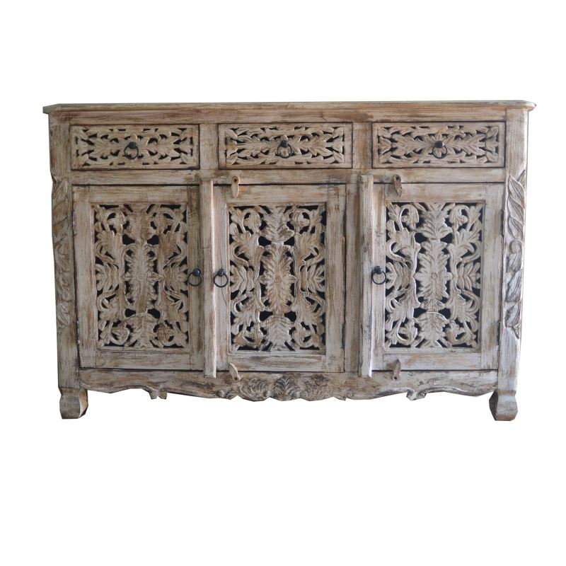 WOODEN 3 DOOR 3 DRAWER CARVED WHITE WASE SIDEBOARD
