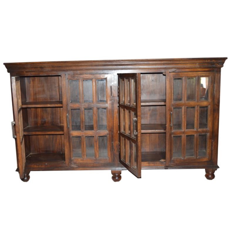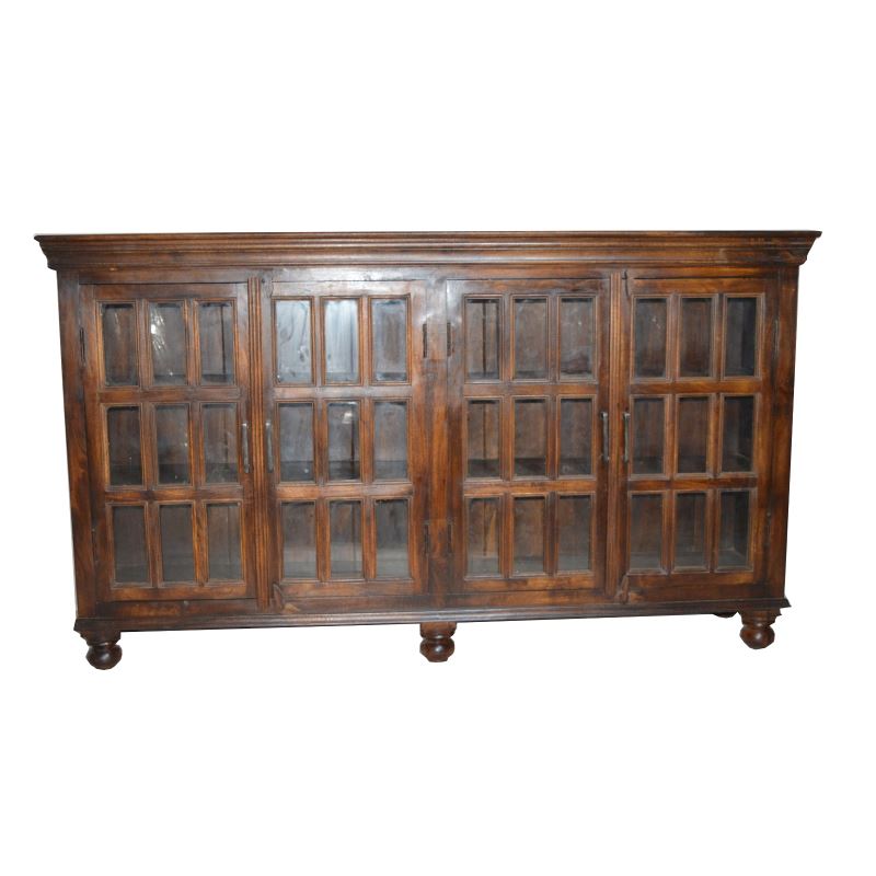 WOODEN 4 DOOR 36 GLASS SIDEBOARD NATURAL COLOUR