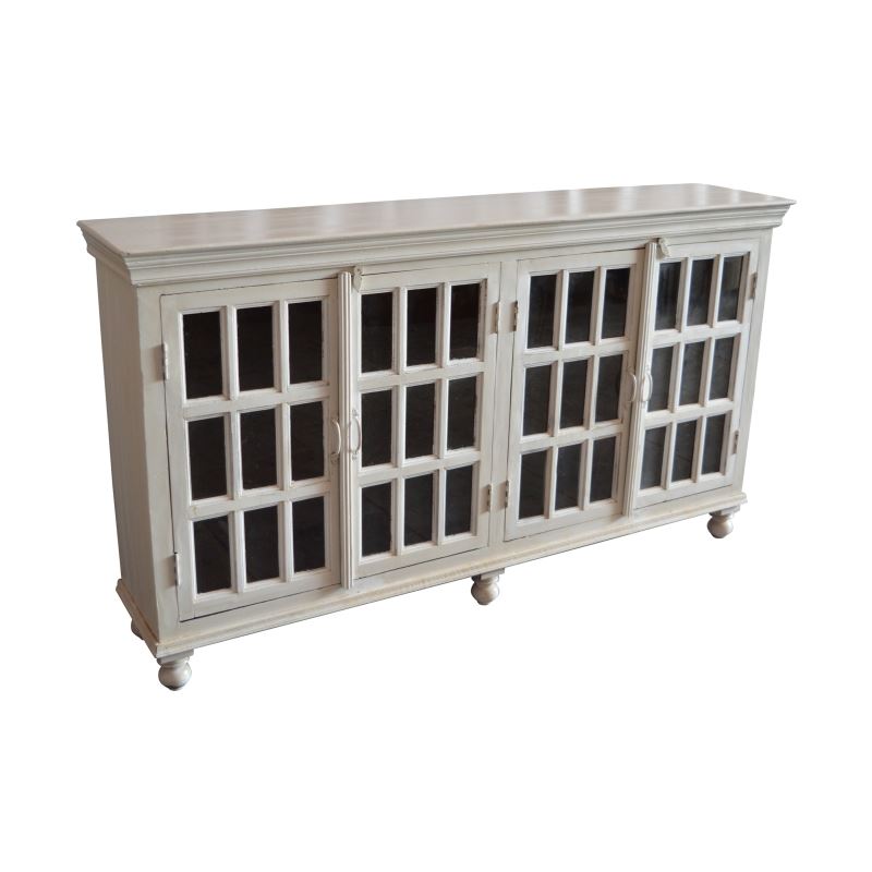 WOODEN 4 DOOR 36 GLASS SIDEBOARD WHAITE COLOUR