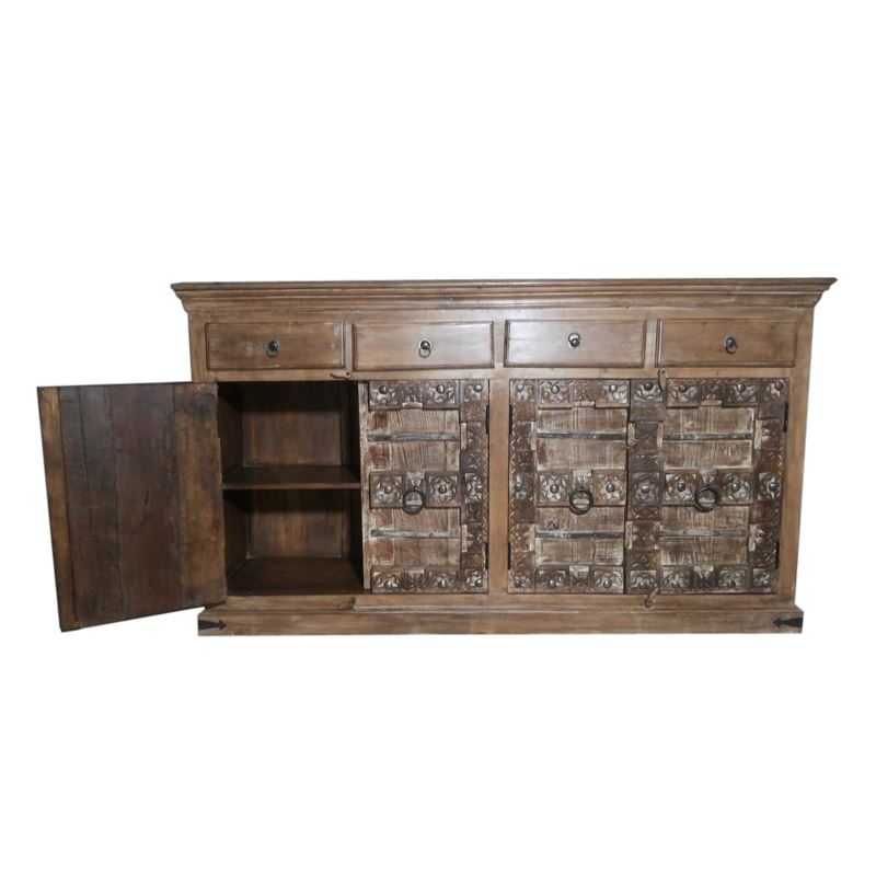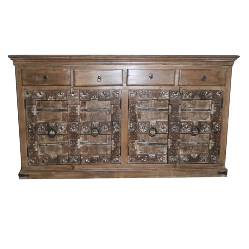 WOODEN 4 DOOR 4 DRAWER SIDEBOARD SURTI CARVING