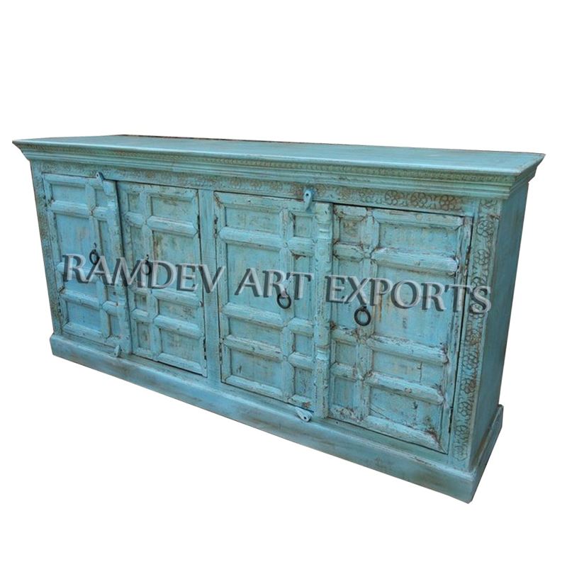WOODEN 4 DOOR SIDEBOARD LIGHT BLUE COLOUR