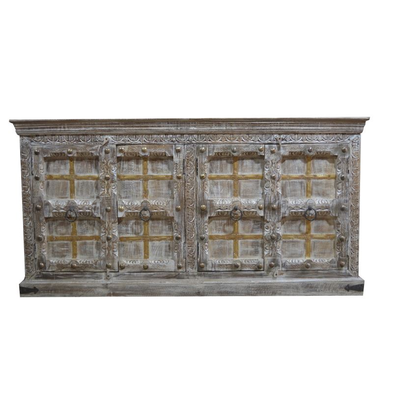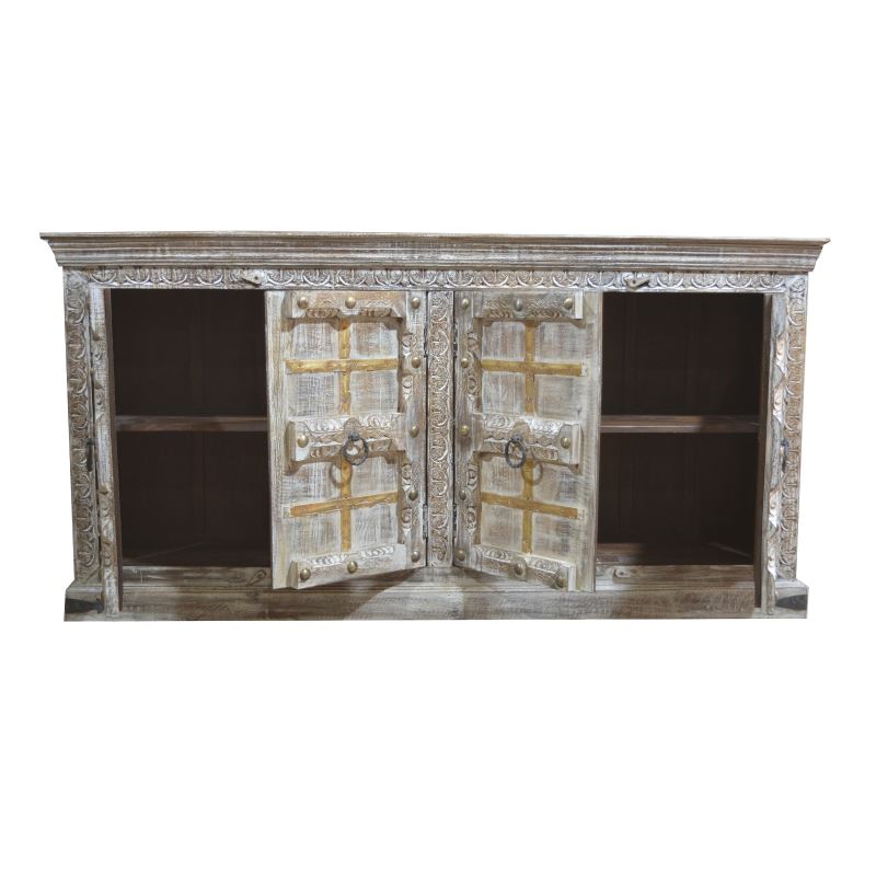 WOODEN 4 DOOR SIDEBOARD SHEKHAWTI CARVED WHITEWASH COLOUR