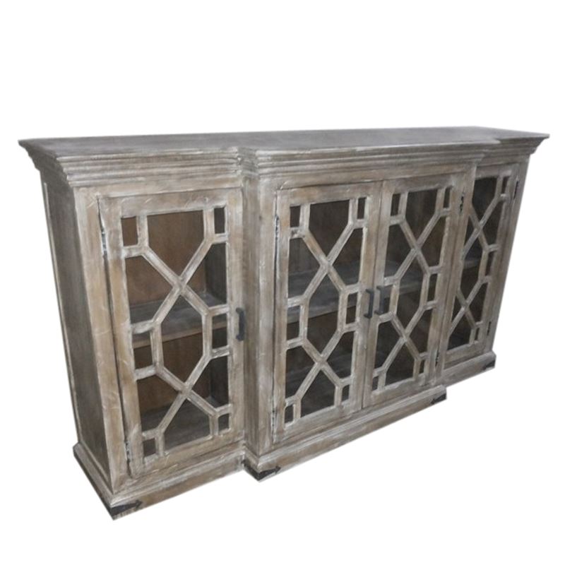 WOODEN 4 DOOR SIDEBOARD WHITEWASH FINISHING