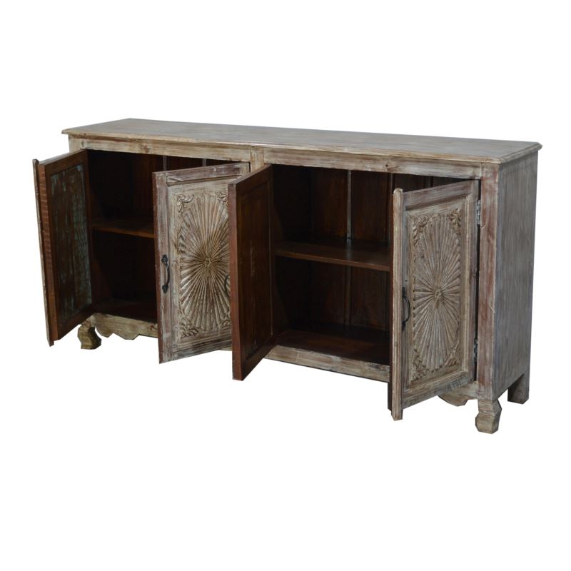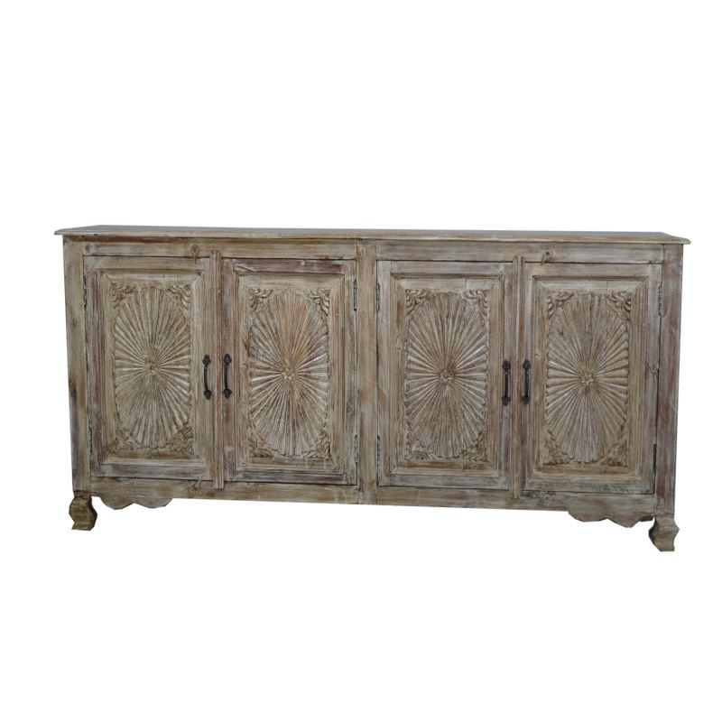 WOODEN 4 DOOR SUNFLOWER CARVING SIDEBOARD