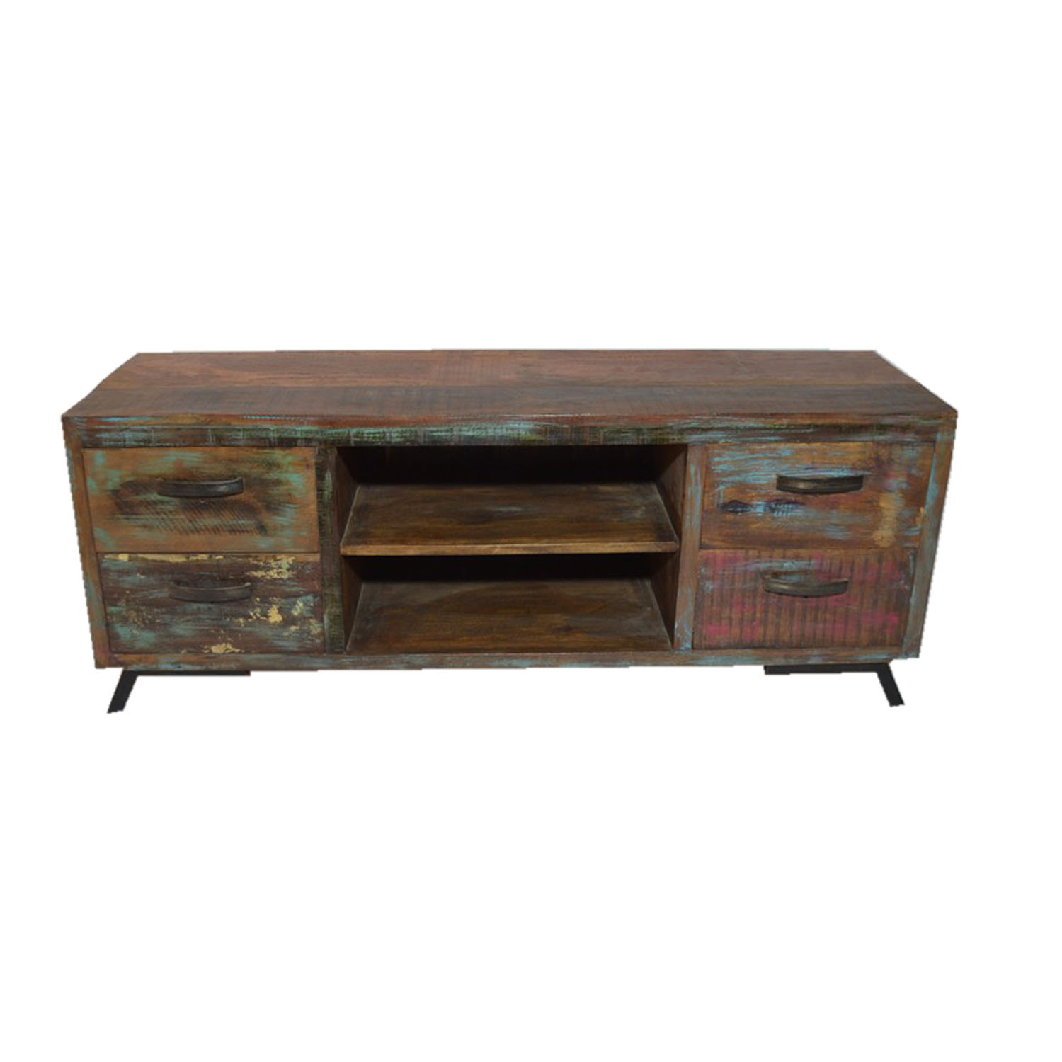 WOODEN 4 DRAWER IRON LEG MEDIA CONSOL
