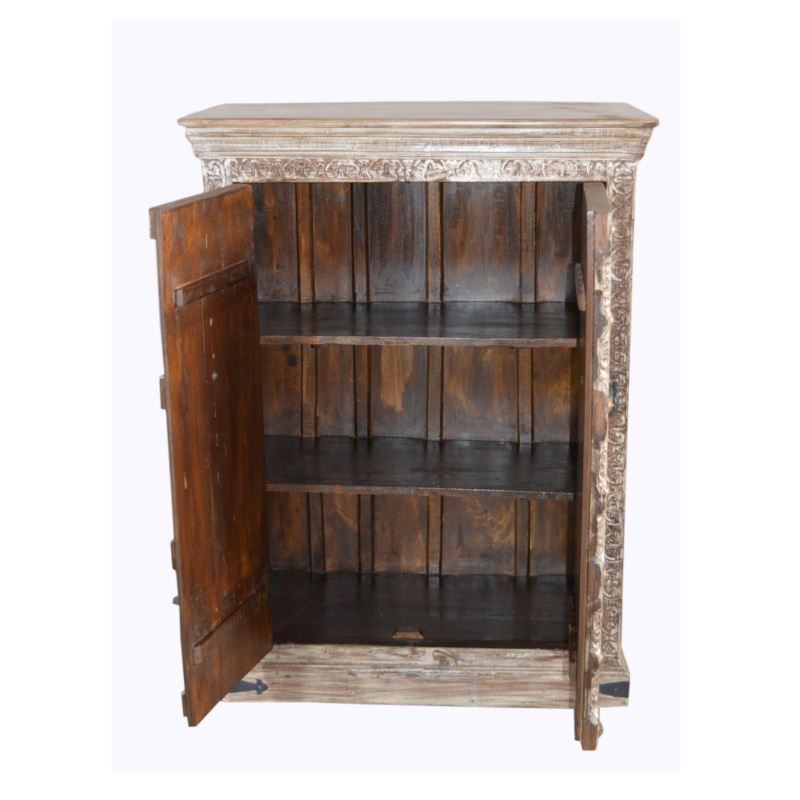 Wooden Old Carved Frame 16 Glass 2 Door Almirah