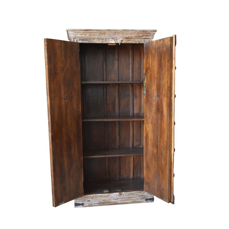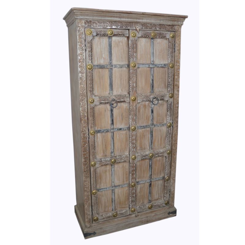 Wooden Carved Door Brass Fitting white Wash Finish almirah