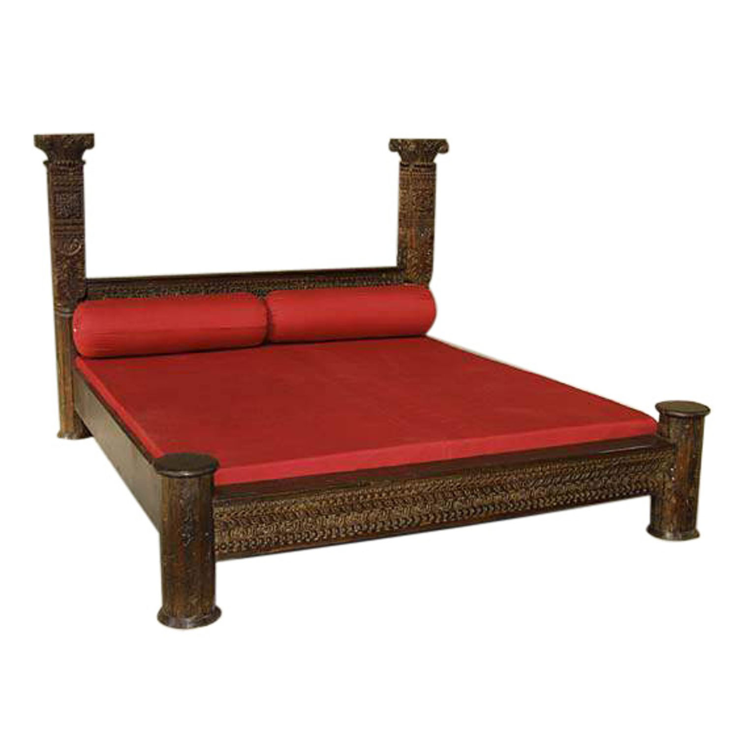 WOODEN CARVED RUSTIC BED (MATTRESS SIZE 180X200)