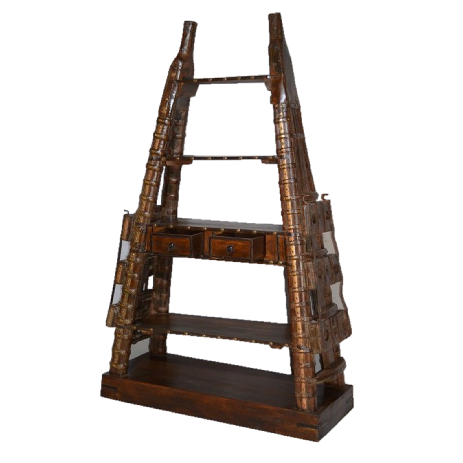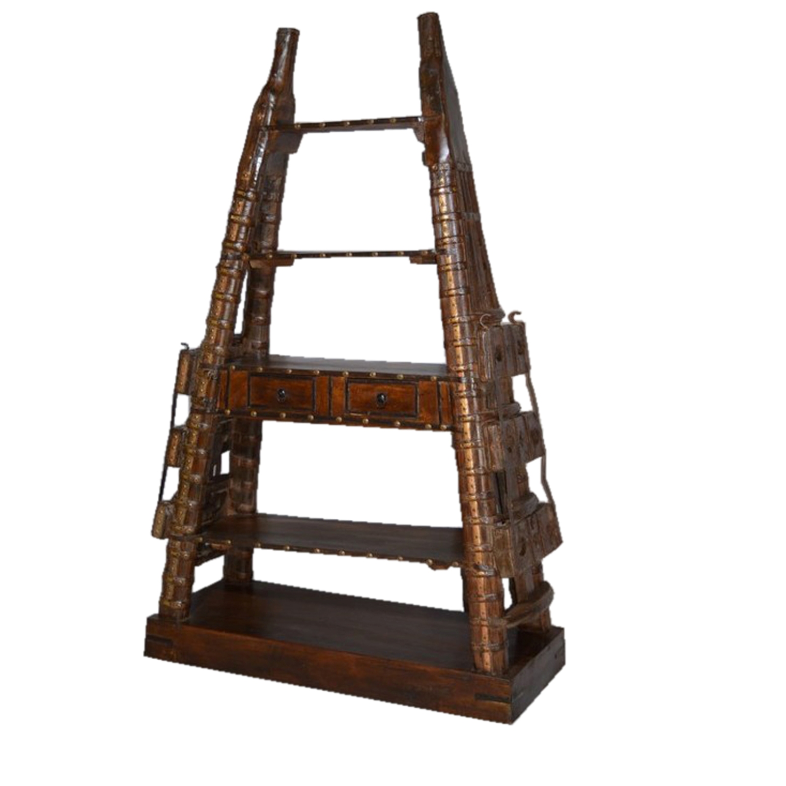 WOODEN OLD ANTIQUE CART BOOK SHELF WITH 2 DRAWER