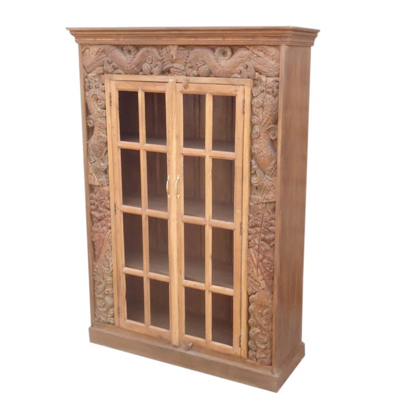 Wooden Old Carved Frame 16 Glass 2 Door Almirah