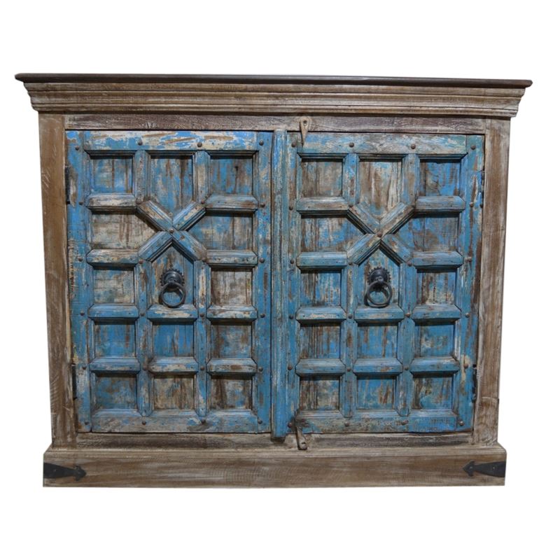 WOODEN PANJABI 2 DOOR CABINET ANTIQUE BLUE COLOUR